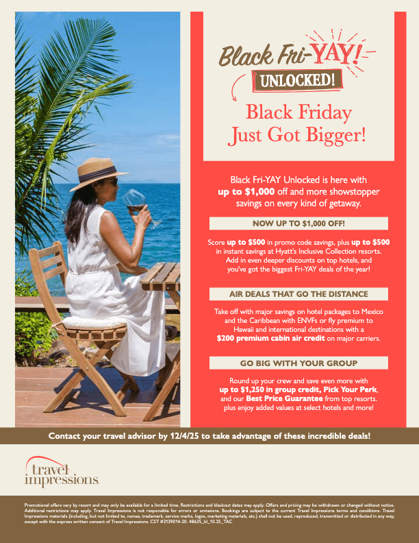 Black Fri-YAY Unlocked is here with up to $1,000 off and more showstopper savings on every kind of getaway.